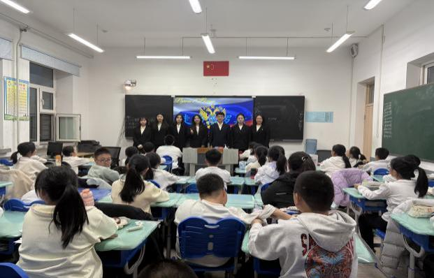 在“实践促学”环节,同学们于11月5日下午走进嵩山中学开展志愿服务教学,为学习俄语的初中生生动讲解俄罗斯的地理风貌与文化习俗,传递用俄语讲好中国故事的理念,把专业知识化作温暖的教育力量,用行动诠释了青年学子的责任担当。