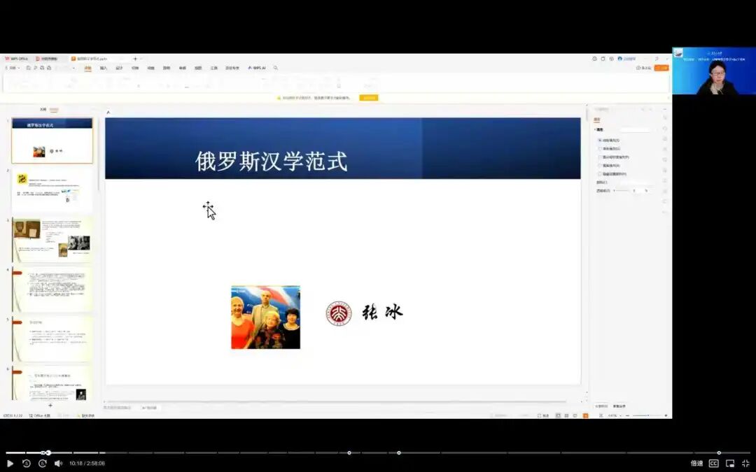 黄东晶对张冰的分享表示感谢并作总结。她鼓励同学们以此次讲座为契机,在学术选题上,可从俄罗斯对中国的认知视角切入,反向探究俄罗斯的国家、民族特质与发展走向,从汉学细节问题着手开展研究。她指出,俄语研究者更应借助精通语言的优势,立足本土视角,以讲好中国故事、拓宽国际视野为己任,关注欧洲中心论、中国中心论等研究范式问题,并期待与大家交流探讨、互鉴共进。