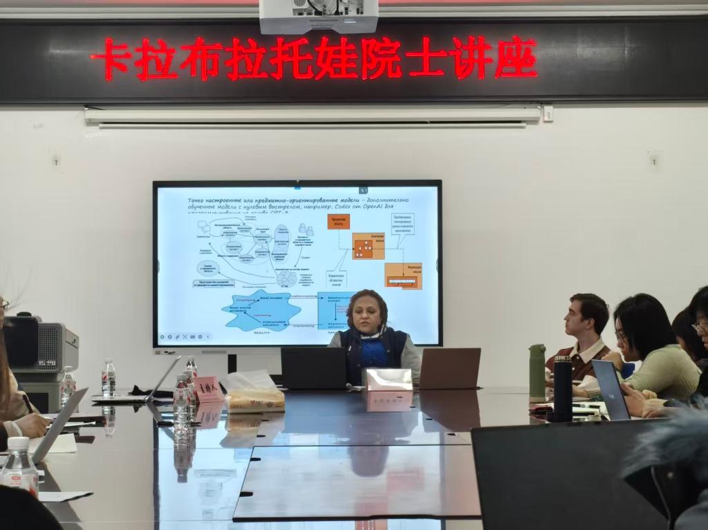 在讲座互动环节,师生围绕大语言模型的构建、大语言模型在科研中的应用等问题与主讲人展开深入研讨,卡拉布拉托娃教授逐一细致解答,线上交流氛围浓厚。